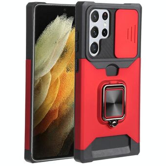 Για Samsung Galaxy S22 Ultra 5G συρόμενη κάμερα Cover Design PC + TPU Shockproof υπόθεση τηλεφώνου με θήκη δαχτυλίδι & υποδοχή κάρτας (κόκκινο)
