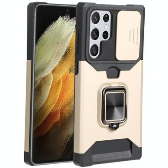 Για Samsung Galaxy S22 Ultra 5G συρόμενη κάμερα Cover Design PC + TPU Shockproof υπόθεση τηλεφώνου με θήκη δαχτυλίδι & υποδοχή κάρτας (χρυσό)