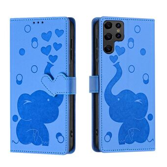 For Samsung Galaxy S22 Ultra 5G Cartoon Elephant Embossed Leather Phone Case(Blue)