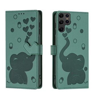 For Samsung Galaxy S22 Ultra 5G Cartoon Elephant Embossed Leather Phone Case(Green)