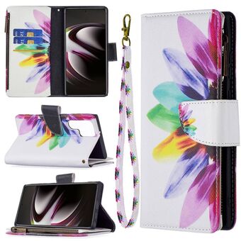 For Samsung Galaxy S22 Ultra 5G Colored Drawing Pattern Zipper Horizontal Flip Phone Leather Case with Holder & Card Slots & Wallet(Lotus)