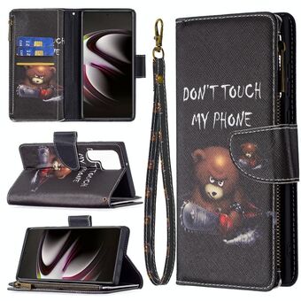 For Samsung Galaxy S22 Ultra 5G Colored Drawing Pattern Zipper Horizontal Flip Phone Leather Case with Holder & Card Slots & Wallet(Bear)