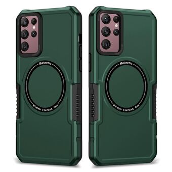 For Samsung Galaxy S22 Ultra 5G MagSafe Shockproof Armor Phone Case(Dark Green)