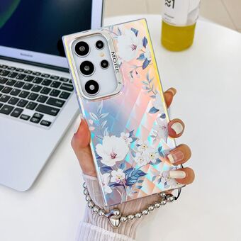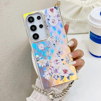 For Samsung Galaxy S22 Ultra 5G Electroplating Laser Flower Phone Case with Wrist Strap(Plum Blossom AH18)