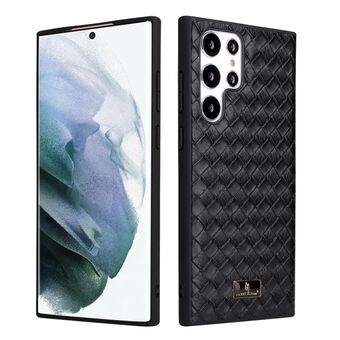 For Samsung Galaxy S22 Ultra 5G Fierre Shann Leather Texture Phone Back Cover Case(Woven Black) (FIERRE SHANN)