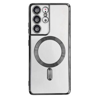 For Samsung Galaxy S22 Ultra 5G Electroplated Frame MagSafe Magnetic Phone Case(Black)