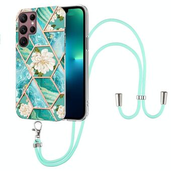 For Samsung Galaxy S22 Ultra 5G Splicing Marble Flower Pattern TPU Phone Case with Lanyard(Imperial Crown)