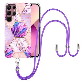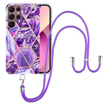 For Samsung Galaxy S22 Ultra 5G Electroplating Splicing Marble TPU Phone Case with Lanyard(Light Purple)
