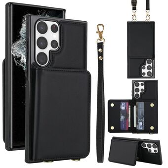 For Samsung Galaxy S22 Ultra 5G Crossbody Dual-buckle Wallet RFID Back Leather Phone Case(Black)