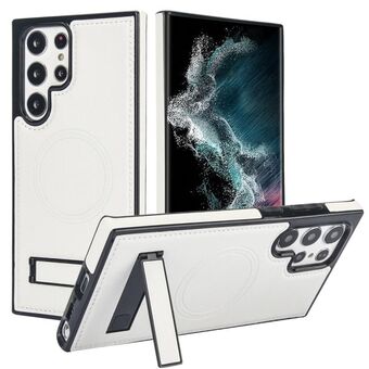 Θήκη τηλεφώνου Samsung Galaxy S22 Ultra 5G από δέρμα retro με αόρατο στήριγμα και MagSafe (Λευκό)