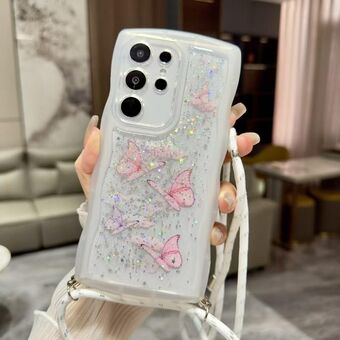 Θήκη κινητού τηλεφώνου Samsung Galaxy S22 Ultra 5G, τύπου crossbody, με κυματιστά άκρα και σχέδιο πεταλούδας από TPU (Μαύρο)