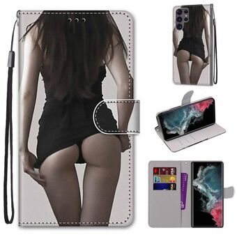 Θήκη τηλεφώνου Samsung Galaxy S22 Ultra 5G από δέρμα PU με οριζόντιο άνοιγμα, πολύχρωμη σχεδίαση με υφή σταυρού, με βάση, θήκες καρτών, πορτοφόλι και κορδόνι (Πολύχρωμο Στρώμα (Μίνι Φούστα))