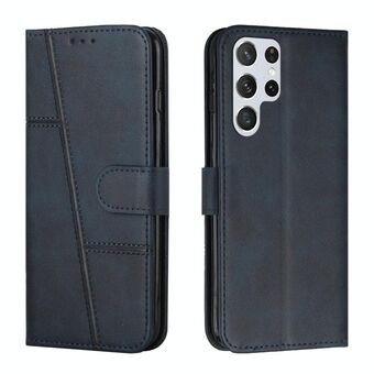 Θήκη κινητού τηλεφώνου Samsung Galaxy S22 Ultra 5G υβριδική από TPU και ακρυλικό με υφή δέρματος λυτσί (Μπλε)