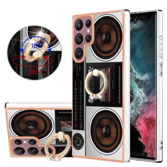 Θήκη τηλεφώνου με δακτύλιο στήριξης και ηλεκτρολυτική επιμετάλλωση διπλής όψης IMD για Samsung Galaxy S22 Ultra 5G (Ρετρό Ραδιόφωνο)
