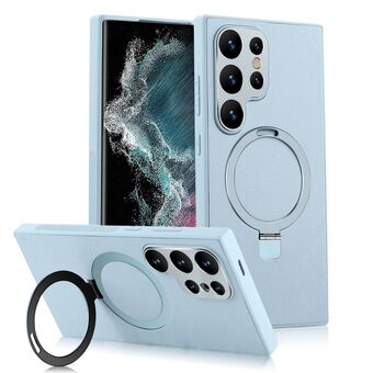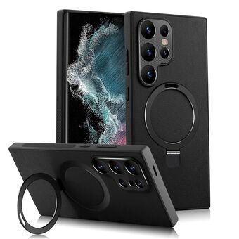 Θήκη τηλεφώνου για Samsung Galaxy S22 Ultra 5G MagSafe περιστρεφόμενη, PC + Δέρμα (Μαύρο)