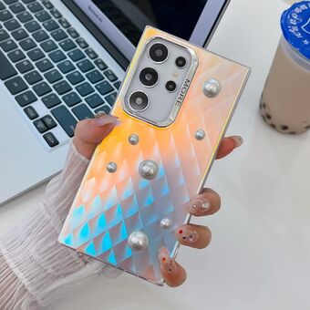 Θήκη τηλεφώνου TPU με υφή λέιζερ μαργαριταριού και ηλεκτρολυτική επικάλυψη για Samsung Galaxy S22 Ultra 5G (Καρό)
