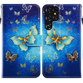 Θήκη τηλεφώνου Samsung Galaxy S22 Ultra 5G, δερμάτινη, οριζόντια αναδίπλωση με ζωγραφισμένο σχέδιο, βάση στήριξης, θήκες για κάρτες & κορνίζα φωτογραφιών (Phnom Penh Butterfly)