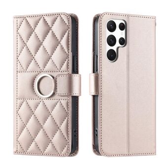 For Samsung Galaxy S22 Ultra 5G Ring Buckle Rhombic Leather Phone Case(Rose Gold)