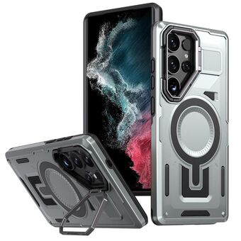 Θήκη κινητού τηλεφώνου Samsung Galaxy S22 Ultra 5G Shield Hollow Frame Holder MagSafe (Χακί Πράσινο)
