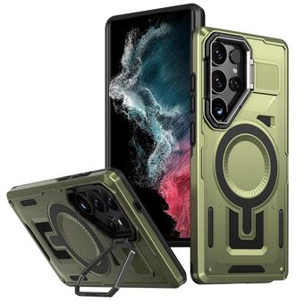 Θήκη κινητού τηλεφώνου Samsung Galaxy S22 Ultra 5G Shield Hollow Frame Holder MagSafe (Χακί Πράσινο)