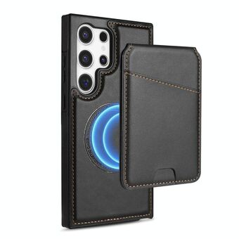 Θήκη κινητού τηλεφώνου Samsung Galaxy S22 Ultra 5G με αίσθηση δέρματος, αποσπώμενη τσέπη για κάρτες και MagSafe (Μαύρο)