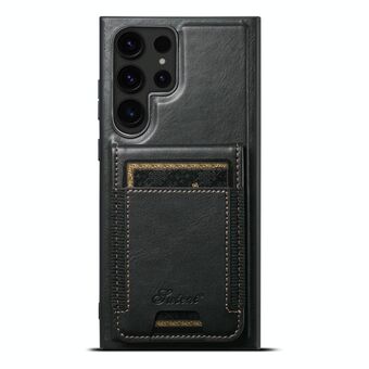 Θήκη τηλεφώνου-πορτοφόλι αποσπώμενη MagSafe από δέρμα Eax λαδιού Suteni H17 για Samsung Galaxy S22 Ultra 5G (Μαύρο) (Suteni)