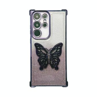 Θήκη τηλεφώνου TPU για Samsung Galaxy S22 Ultra 5G με ηλεκτρολυτική λάμψη, 3D πεταλούδα και προστασία από κρούσεις στις τέσσερις γωνίες (βαθμιδωτό μωβ)