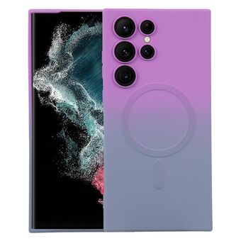 Θήκη τηλεφώνου για Samsung Galaxy S22 Ultra 5G, Υγρή σιλικόνη TPU με διαβάθμιση χρώματος, συμβατή με MagSafe (Ροζ-Κόκκινο)