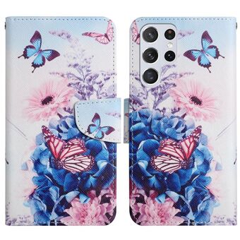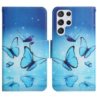Θήκη τηλεφώνου Samsung Galaxy S22 Ultra 5G από δέρμα με οριζόντιο άνοιγμα και ζωγραφισμένο σχέδιο (Πεταλούδα που πετάει)