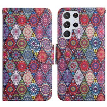 Θήκη δέρματος τύπου flip με έγχρωμο σχέδιο για Samsung Galaxy S22 Ultra 5G (Εθνικό Στυλ)