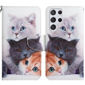 Θήκη τηλεφώνου Samsung Galaxy S22 Ultra 5G από δέρμα με οριζόντιο άνοιγμα και ζωγραφισμένο σχέδιο (Τρία Γατάκια)