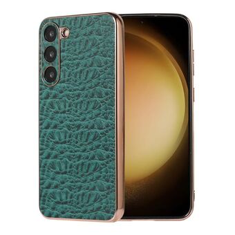 For Samsung Galaxy S23 5G Crocodile Texture Genuine Leather Electroplating Phone Case(Dark Green)