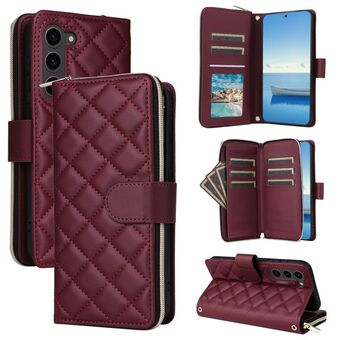 Θήκη τηλεφώνου Samsung Galaxy S23 5G από δέρμα με λουρί, σχέδιο ρόμβου, φερμουάρ, αγκράφα πύργου (Κρασί)