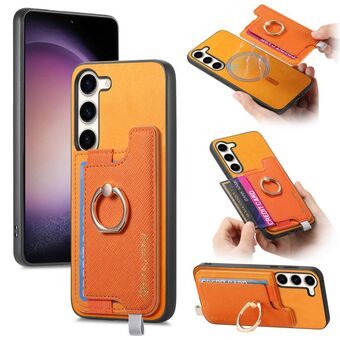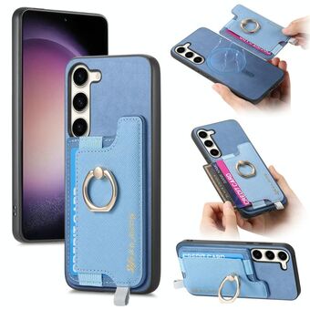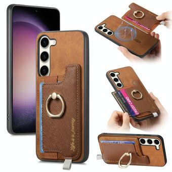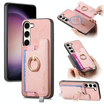 Θήκη τηλεφώνου Samsung Galaxy S23 5G Retro Cross Leather Ring Οριζόντια Εισαγωγή Κάρτας MagSafe (Ροζ)