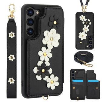 For Samsung Galaxy S25+ 5G Crossbody Flower Pattern Leather Phone Case(Black)