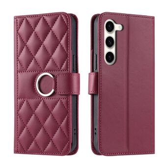 For Samsung Galaxy S23+ 5G Ring Buckle Rhombic Leather Phone Case(Red)
