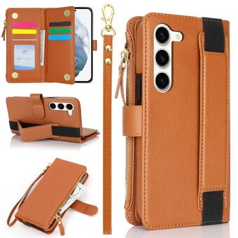 For Samsung Galaxy S23+ 5G Wristband Holder Zipper Purse RFID Leather Phone Case(Brown)