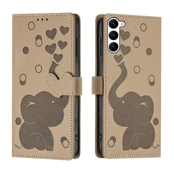 For Samsung Galaxy S23+ 5G Cartoon Elephant Embossed Leather Phone Case(Khaki)
