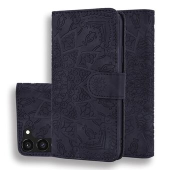 For Samsung Galaxy S23+ 5G Mandala Embossed Dual-Fold Calf Leather Phone Case(Black)