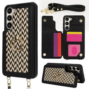 For Samsung Galaxy S23+ 5G Double Bckle Card Slot Full Coverage Phone Case with Cross-body Strap(Black)