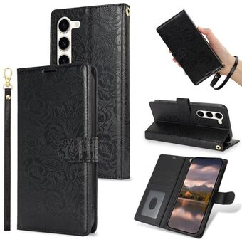 For Samsung Galaxy S23+ 5G Peony Flowers Imprint Leather Phone Case(Black)