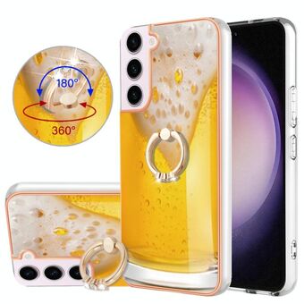 For Samsung Galaxy S23 5G Electroplating Dual-side IMD Phone Case with Ring Holder(Draft Beer)