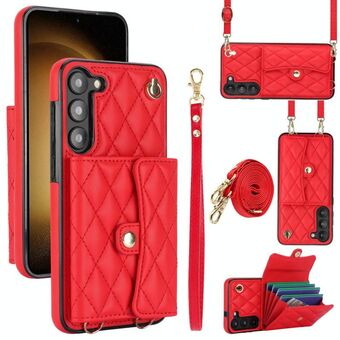 For Samsung Galaxy S23 5G Crossbody Rhombic Horizontal Wallet Leather Phone Case(Red)
