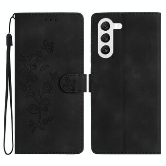 Για Samsung Galaxy S23 5G λουλούδι πεταλούδα ανάγλυφο μοτίβο δερμάτινη θήκη τηλεφώνου (μαύρο)