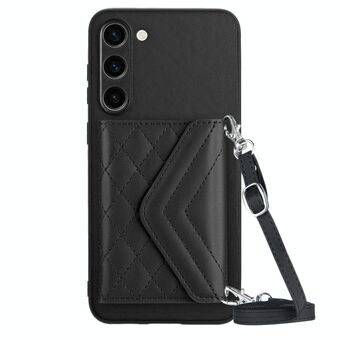 Για Samsung Galaxy S23 5G Rhombic υφή κάρτα τσάντα RFID υπόθεση τηλεφώνου με μακρύ κορδόνι(Μαύρο)