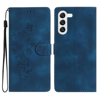 Για Samsung Galaxy S23 5G λουλούδι πεταλούδα ανάγλυφο μοτίβο δερμάτινη θήκη τηλεφώνου (μπλε)