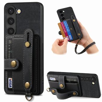 Για Samsung Galaxy S23 5G Ρετρό Σταυρός Wristband πορτοφόλι δέρμα πίσω τηλέφωνο υπόθεση (μαύρο)