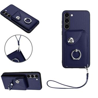 Για Samsung Galaxy S23 5G Οργάνου κάρτα τσάντα δαχτυλίδι κάτοχος PU υπόθεση τηλεφώνου με κορδόνι (μπλε)