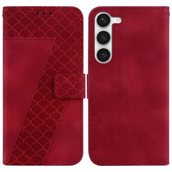 Θήκη τηλεφώνου Samsung Galaxy S23 5G από δέρμα με ανάγλυφο σχέδιο σε σχήμα επτά (Μωβ)
