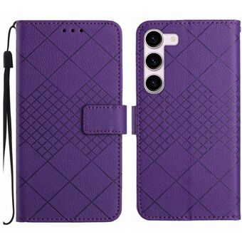 Για Samsung Galaxy S23 5G Rhombic Grid Texture Δερμάτινη θήκη τηλεφώνου (μωβ)